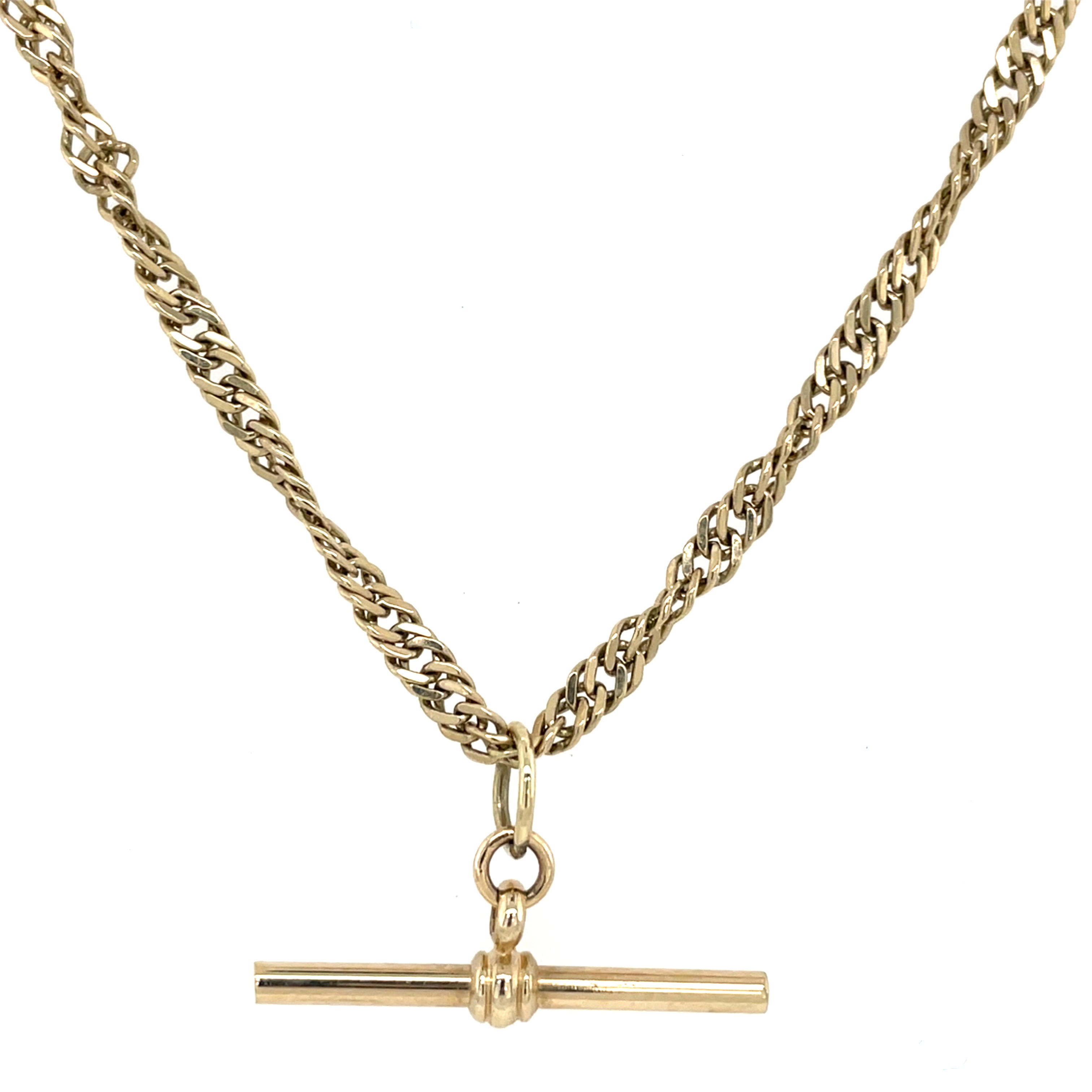 This elegant 9ct yellow gold necklace features a distinctive twisted curb chain, 40cm in length, paired with a refined T-bar pendant measuring 2.5cm. A timeless piece that combines classic design with quality craftsmanship, perfect for everyday wear or special occasions.