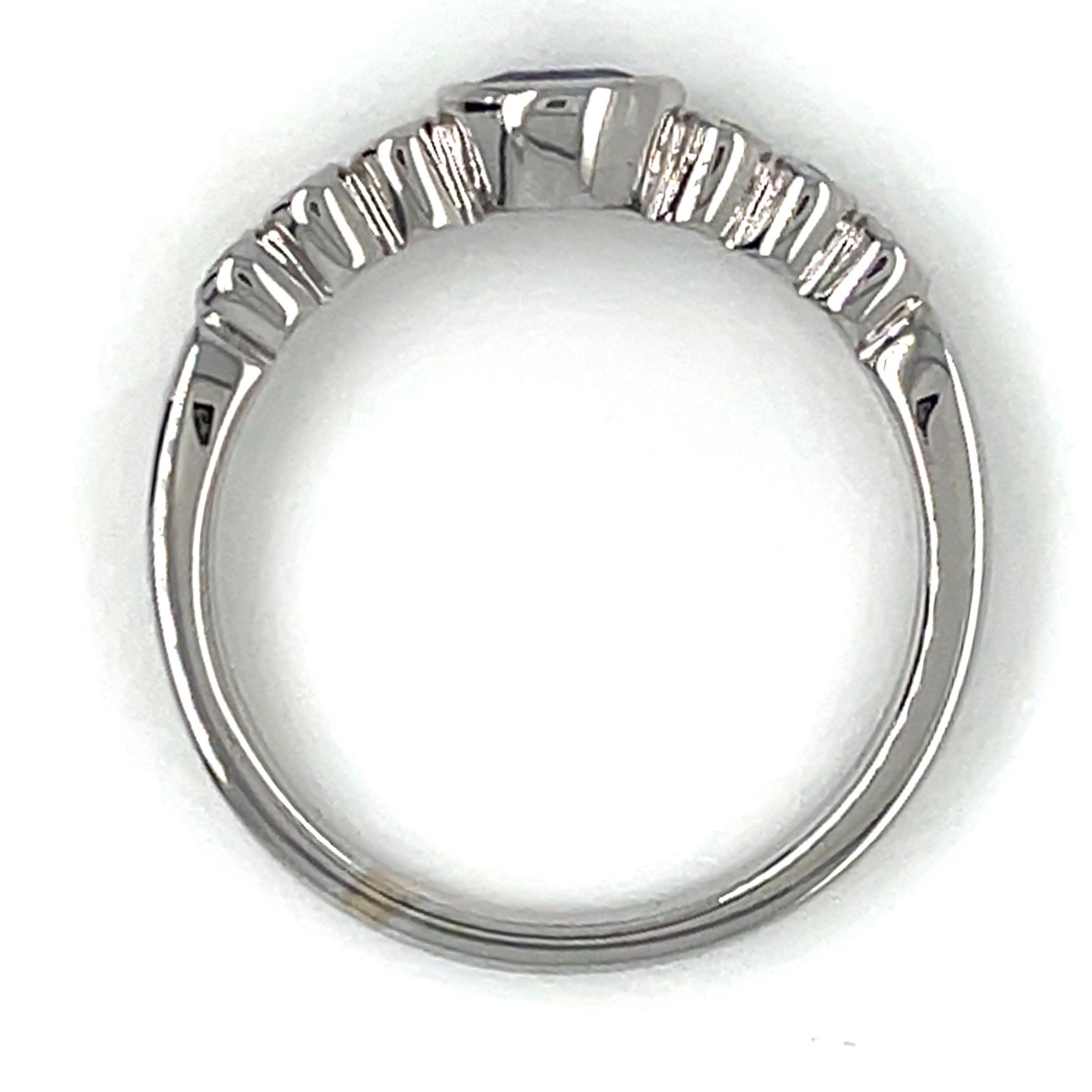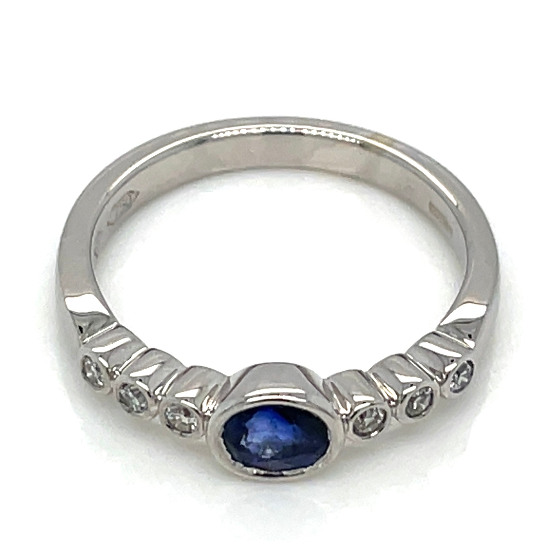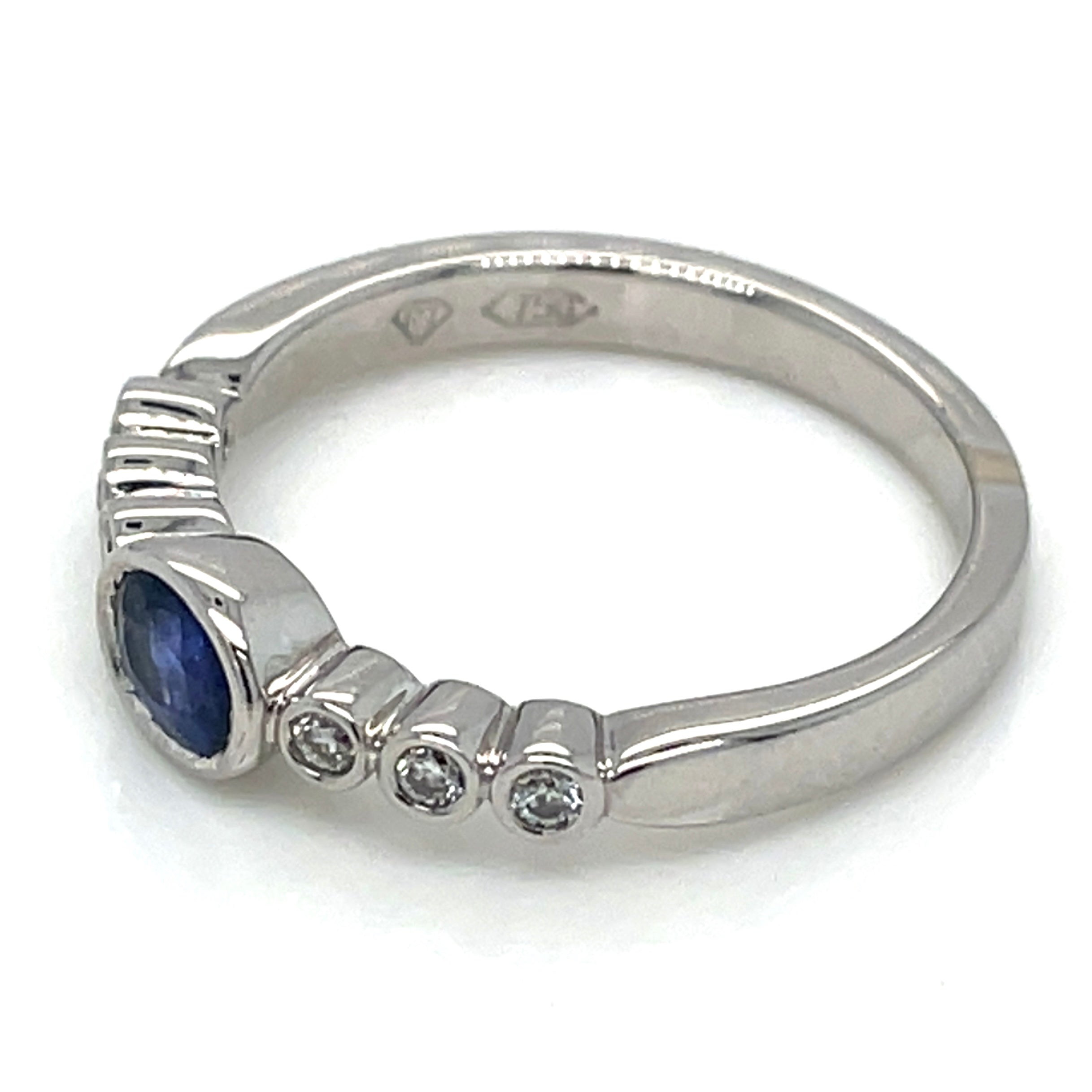 Enhance your style with our stunning Vintage 18ct White Gold Round Cut Royal Blue Sapphire and Earth Grown Diamond Ring. The center sapphire stone and six diamonds offer both elegance and luxury, making this ring a timeless addition to your jewelry collection. Handcrafted with vintage 18ct white gold, it's the perfect combination of classic and modern design. Elevate your look with this exquisite and rare piece. The Earth Grown Diamonds total a luxurious 0.15ct weight and have a D colour. The centre Blue Sapphire stone totals 0.30ct.