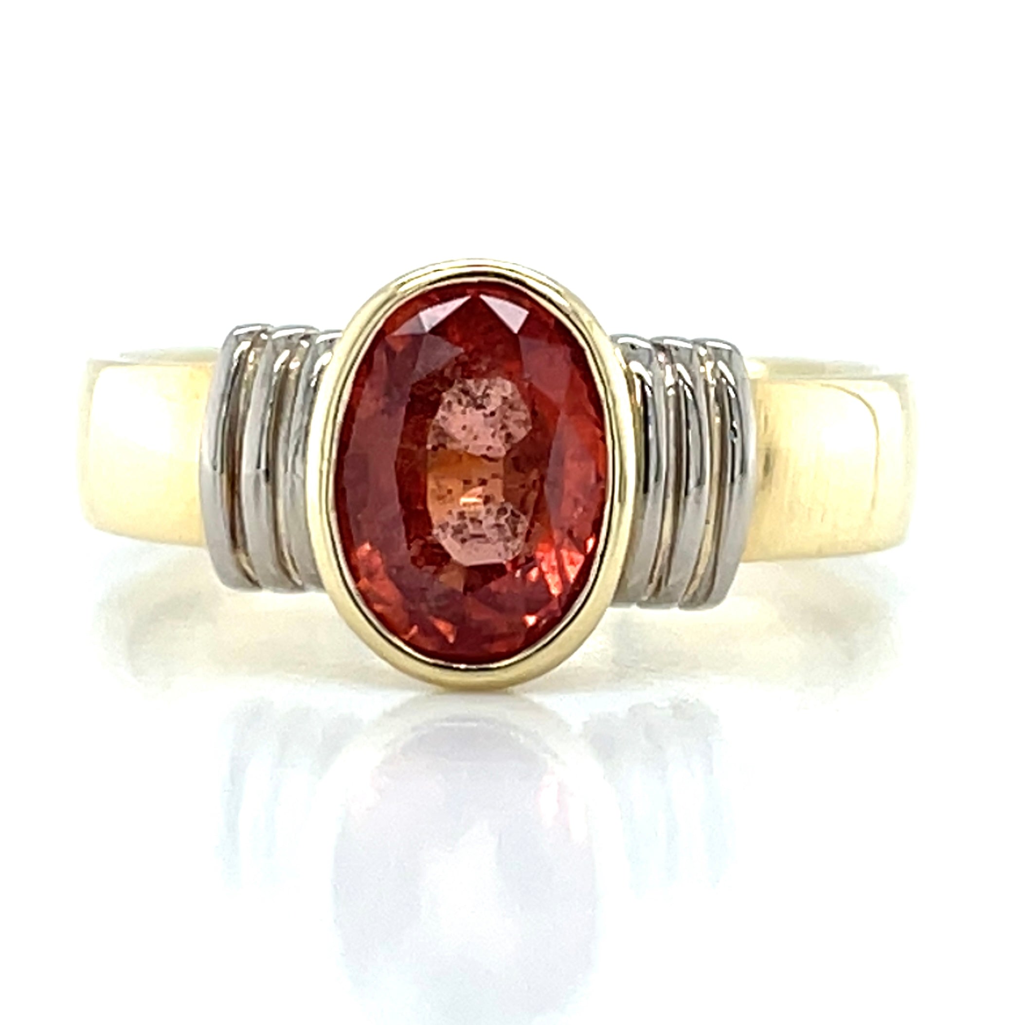 Vintage 18ct Yellow Gold Bezel Set Orange Tourmaline Ring
