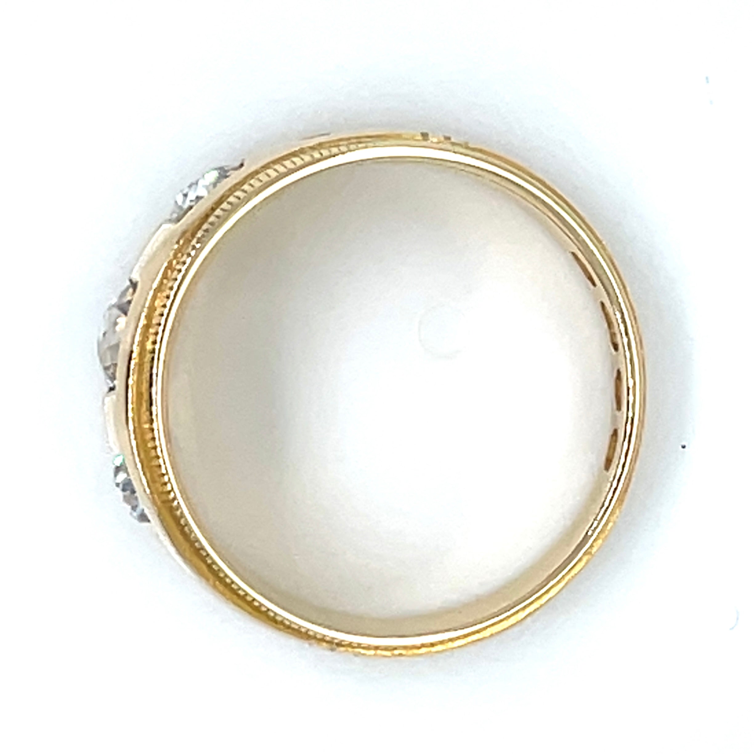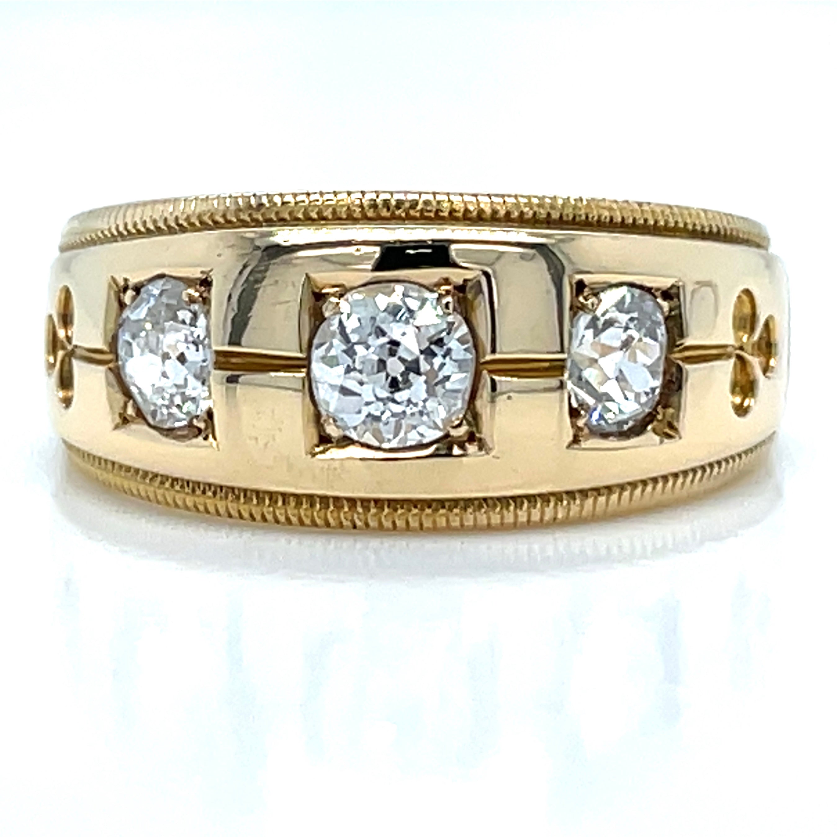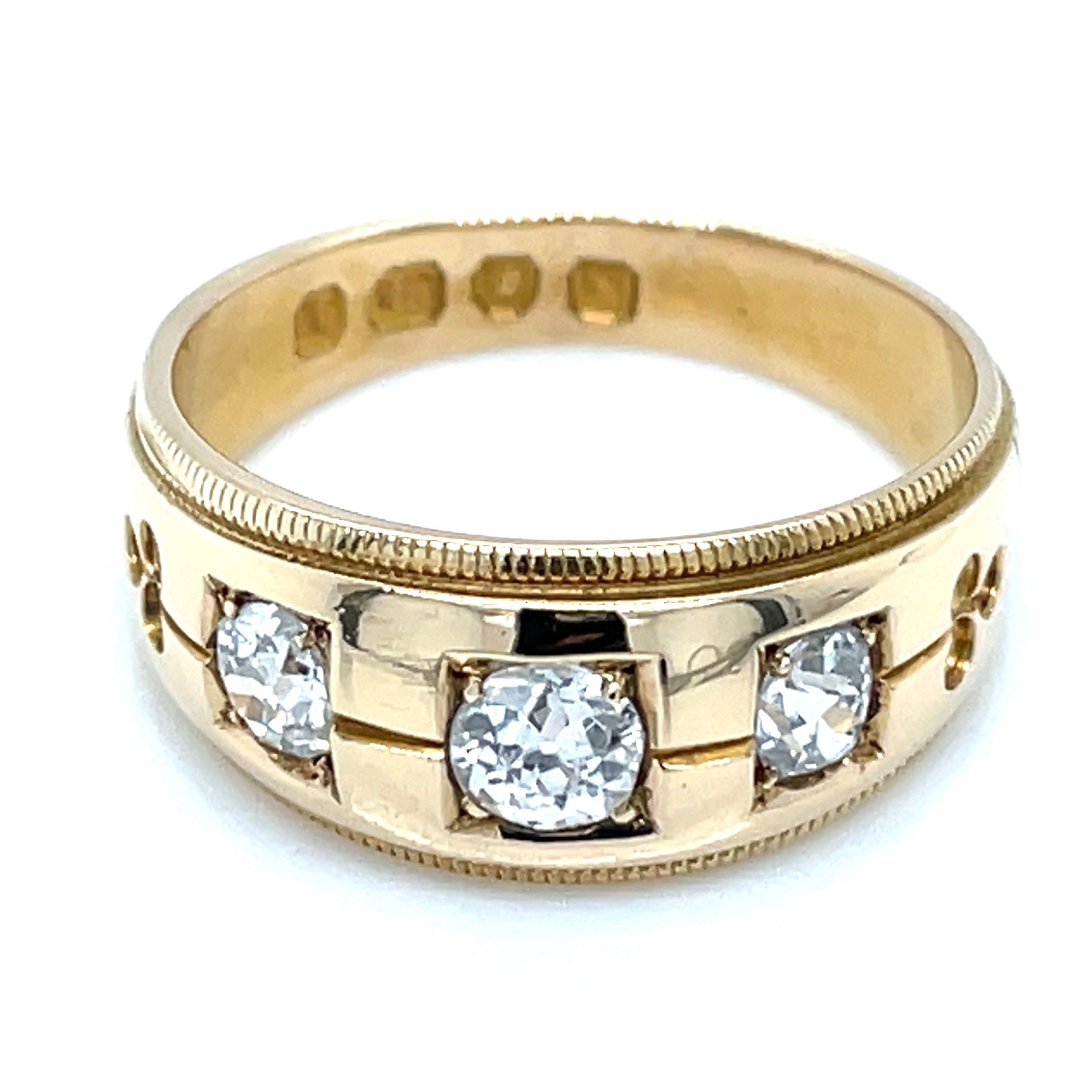 Expertly crafted in 18ct yellow gold, this vintage band boasts three dazzling Earth grown diamonds approximately 70pts set within the band. Enhance your everyday look with the timeless elegance of this stunning piece, perfect for adding a touch of luxury to any outfit.