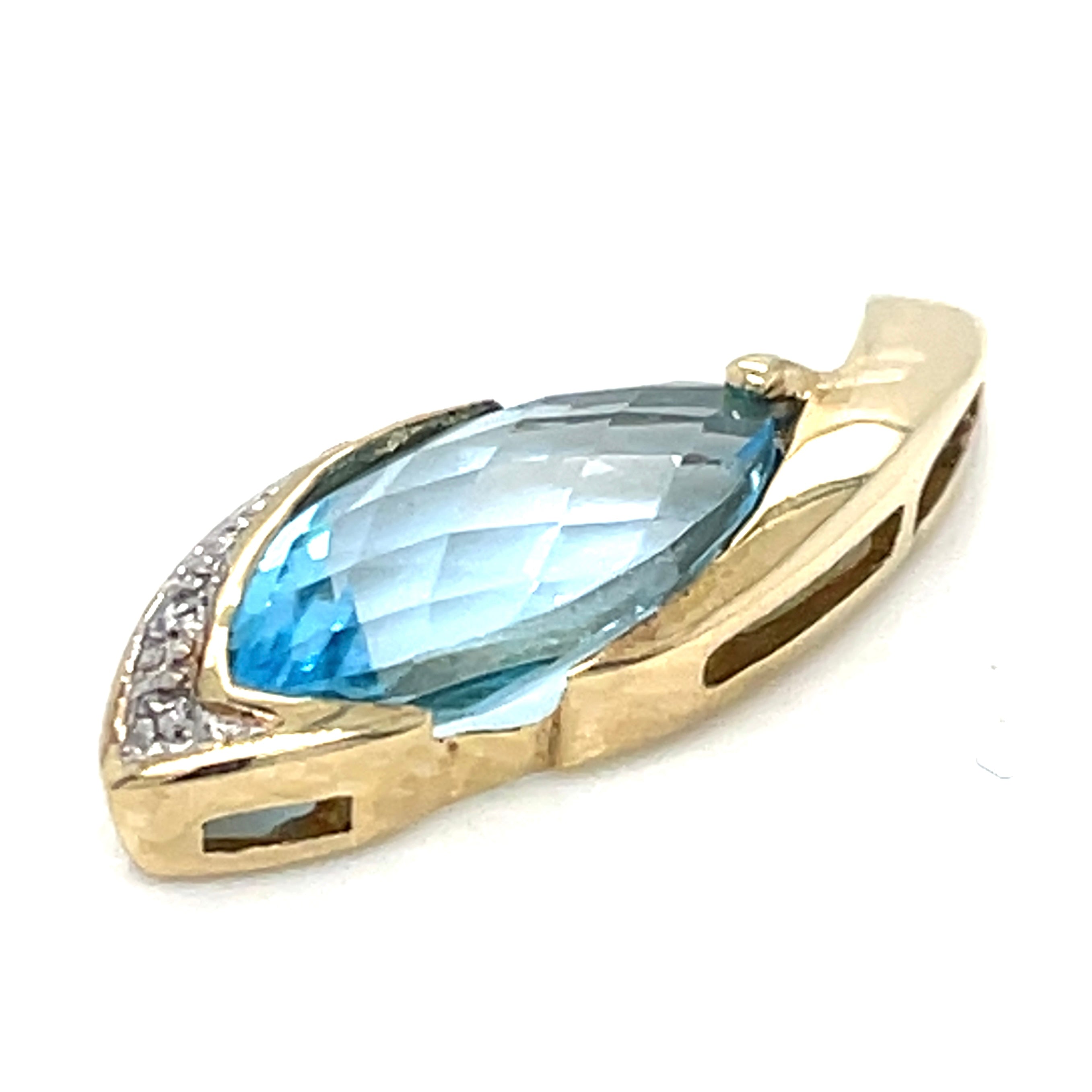 Elevate your style with our Vintage 9ct Yellow Gold Topaz and Earth Grown Diamond Teardrop Pendant. An exquisite combination of 9ct yellow gold, topaz, and earth grown diamond gives this pendant a timeless and elegant look. Perfect for any occasion, this pendant will add a touch of sophistication to any outfit. Length is 2cm. Width is 0.7cm
