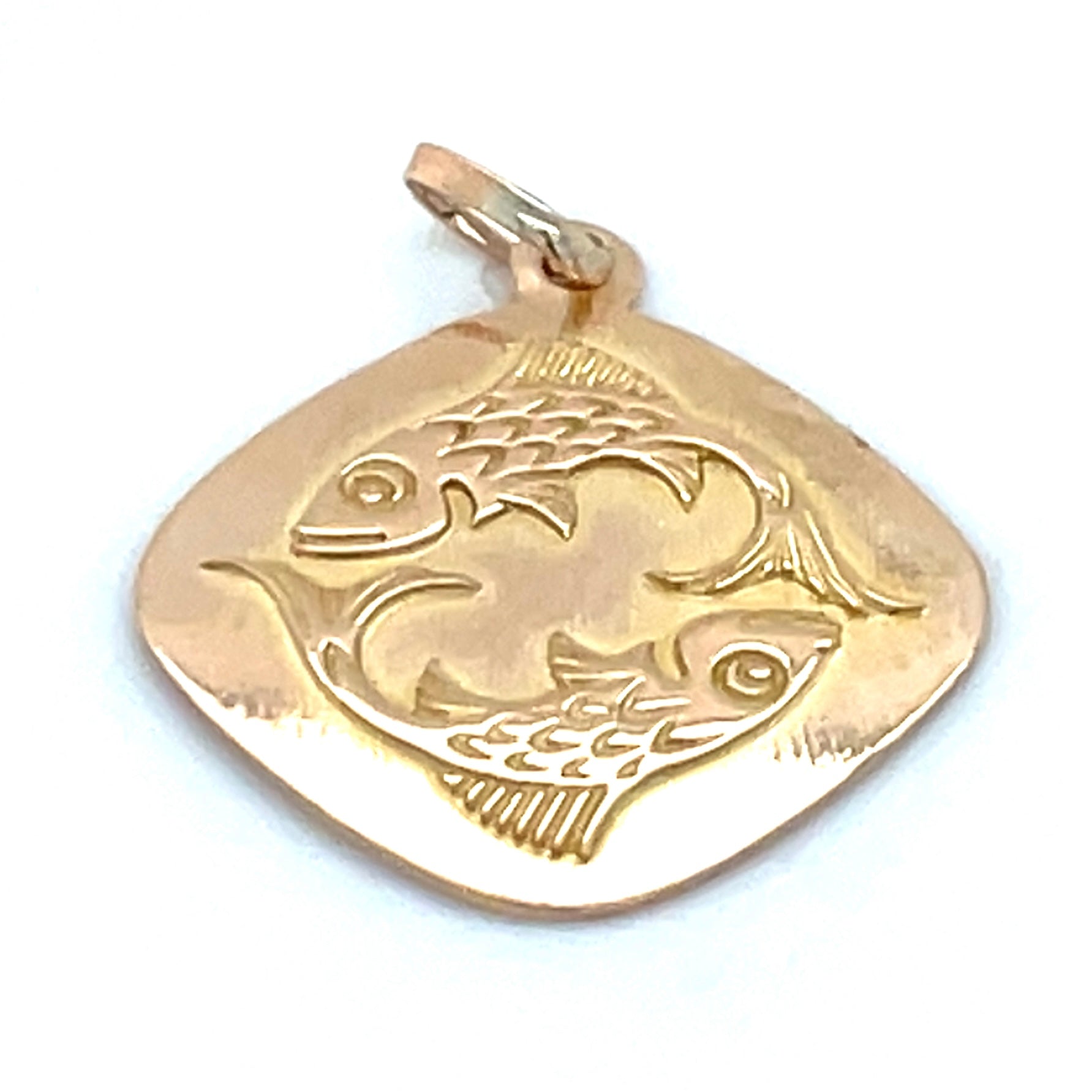 This vintage 9ct yellow gold pendant features the Pisces zodiac sign, crafted with expert precision to highlight its timeless design. Its warm gold tone and classic style make it a subtle yet meaningful addition to any collection, ideal for those born under the water sign or anyone appreciating elegant astrological jewellery. Please note the pendant is sold without a chain. The pendant dimensions are 17mm x 19mm.