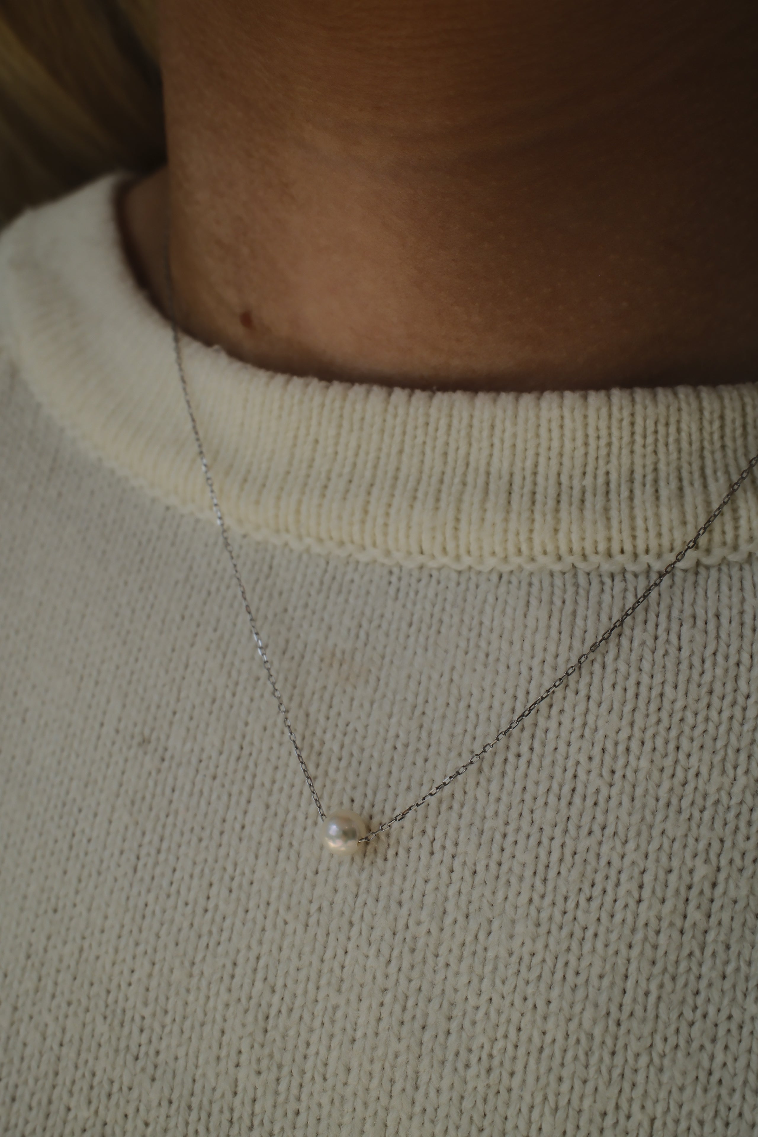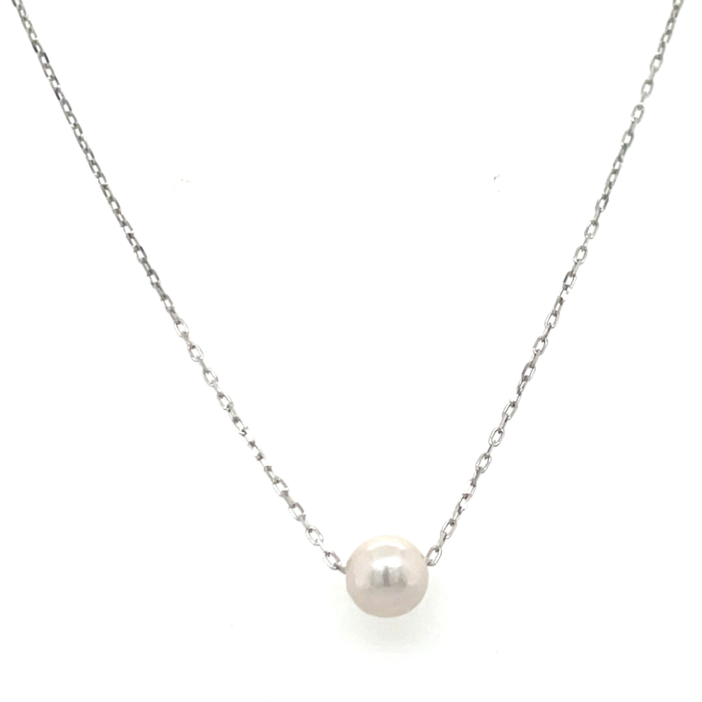 Expertly crafted with a classic design, the 9ct white Gold Floating Pearl Pendant features a stunning Freshwater Pearl suspended on a delicate 9ct Gold chain. Elevate any outfit with this timeless and elegant piece.