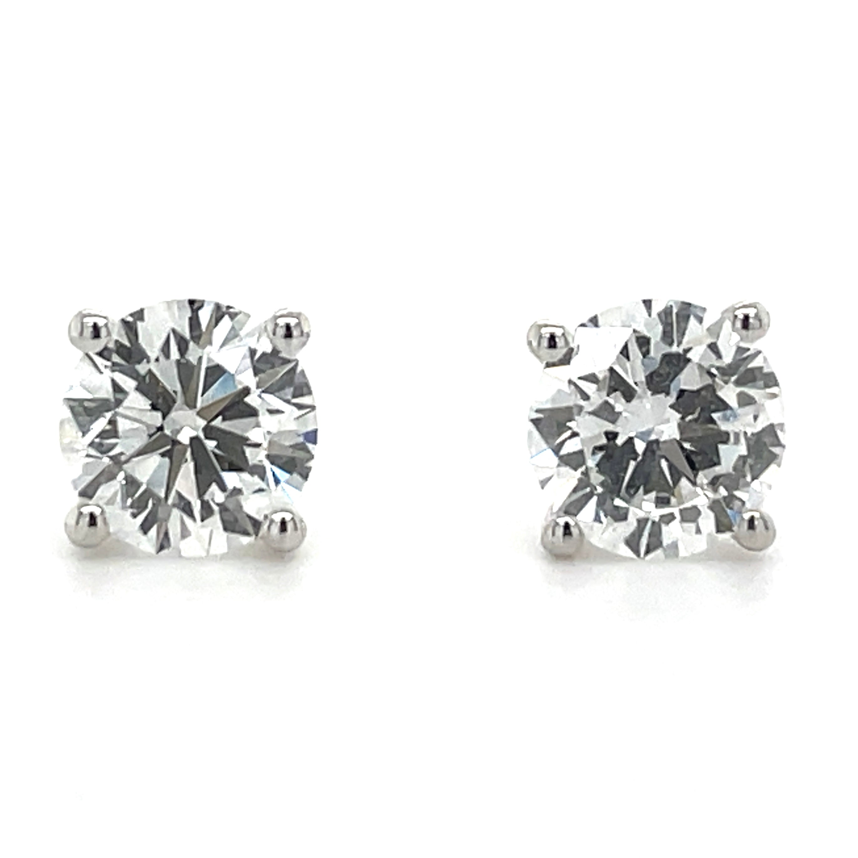 Enhance your jewellery collection with these 14ct white gold stud earrings featuring two brilliant 1ct-1.01ct round laboratory grown diamonds. Enjoy the high-quality craftsmanship and timeless elegance of these sparkling earrings. Upgrade your style with confidence. All stones IGI Certified are E Colour and Vs1 Clarity.