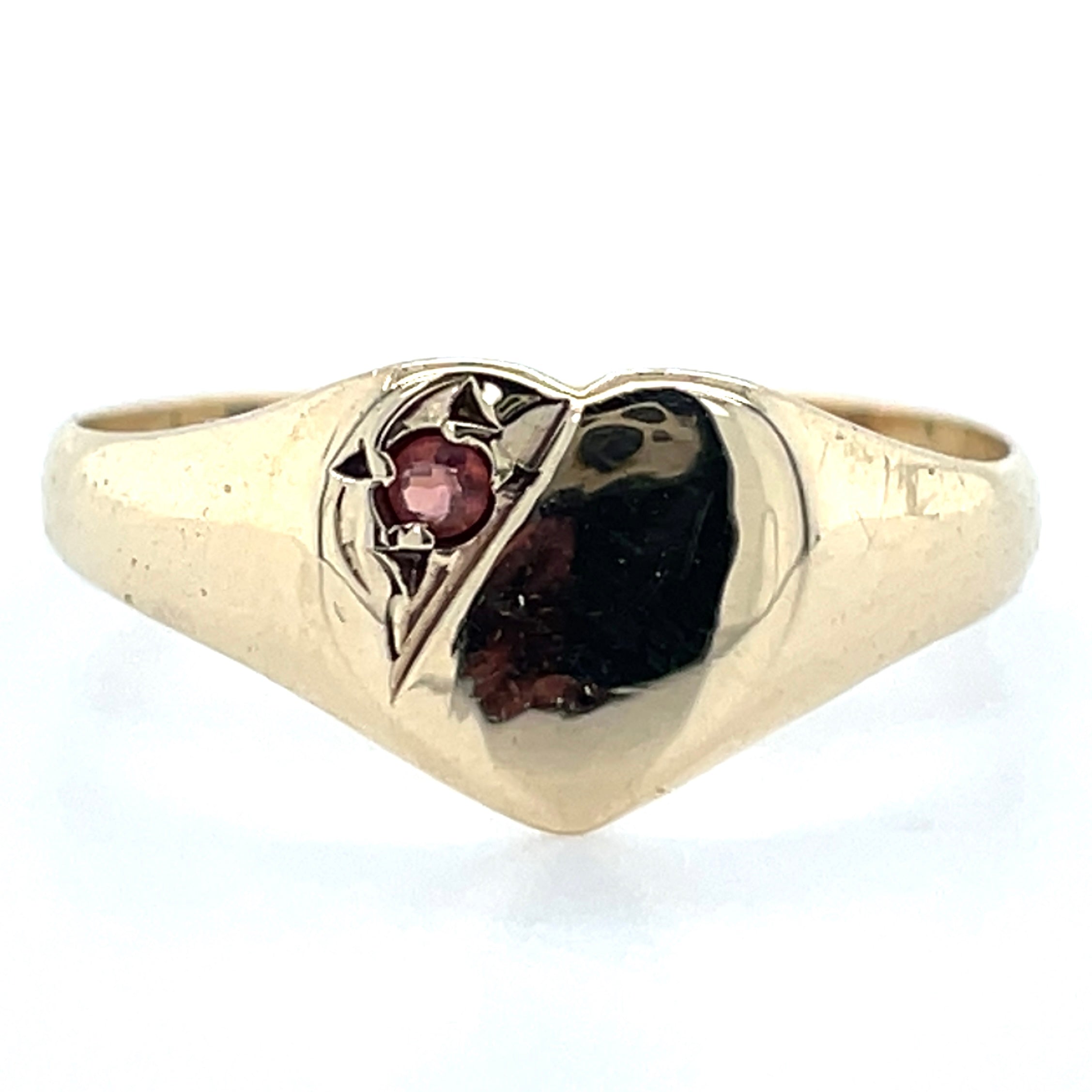 A timeless 9ct yellow gold signet ring featuring an elegant heart design, perfect for personal wear or as a meaningful gift. Please note that engraving is limited to a single letter or number due to the ring's compact face.